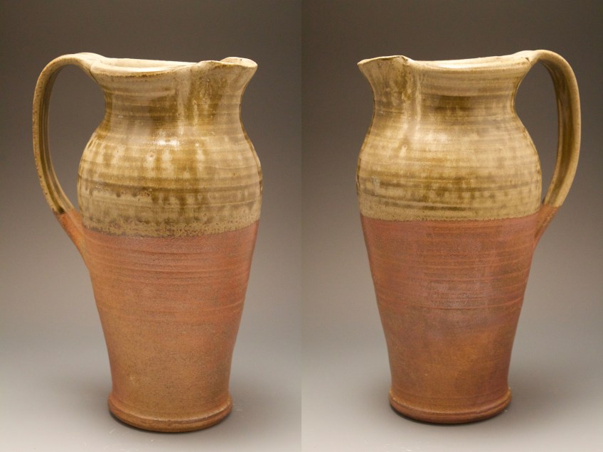 02 pitcher Published August 11, 2020 at 2400 × 1800 in 02 pitcher 5″w x 10″h This pitcher is made from stoneware that is wood fired with an ash glaze. This glaze is made by combining ash from our studio wood stove and our local clay dug from the yard. $75