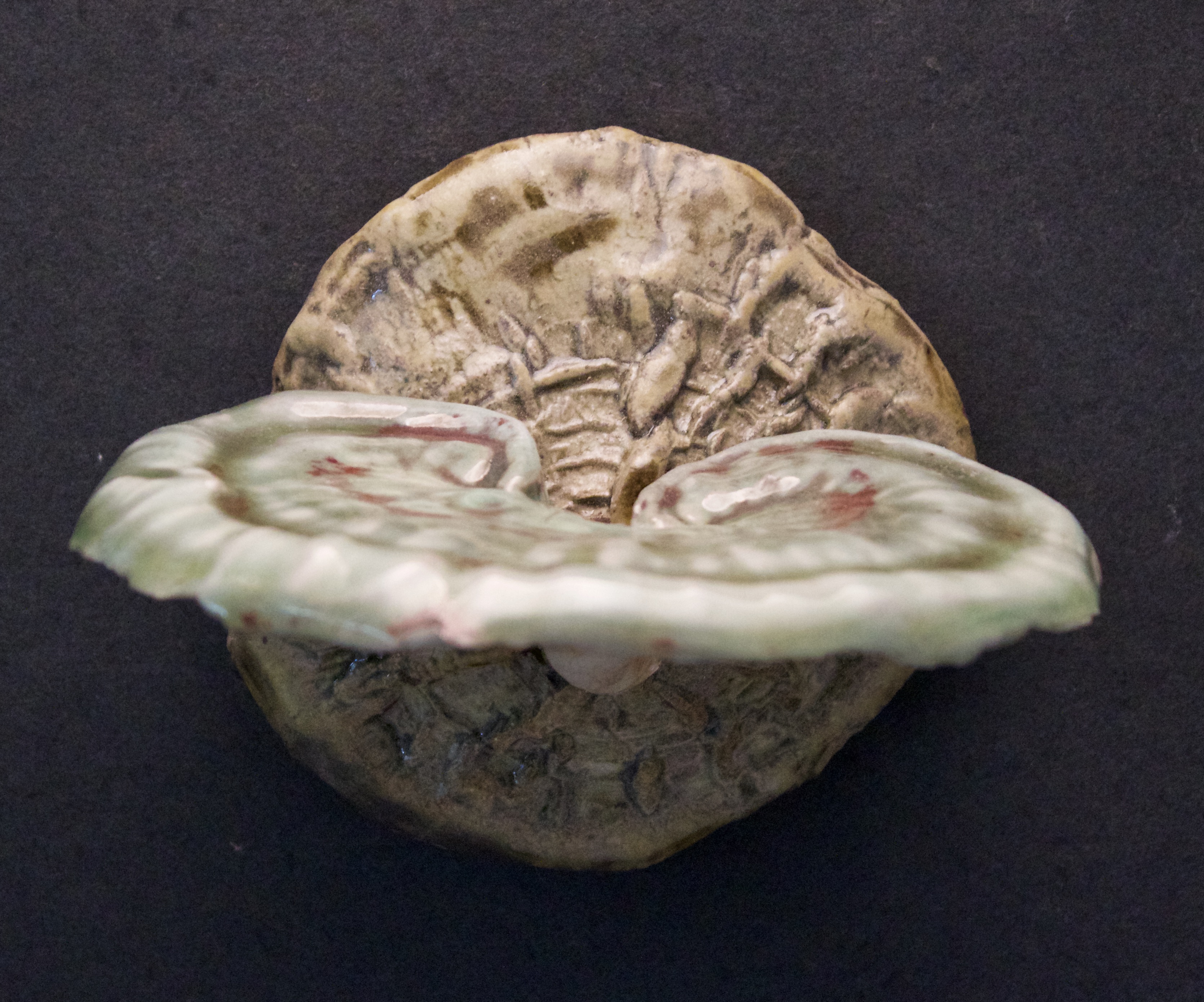 031 emerge #4 Published June 18, 2020 at 3341 × 2780 in 031 emerge #4 4” x 5 ½” x 5” oribe’, red, wood ash glazes, stoneware