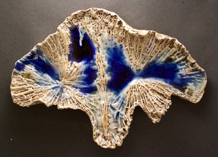 051 loss of water #1 Published June 18, 2020 at 4699 × 3383 in 051 loss of water #1 SOLD 11” x 16” x 2 ½” wood ash glaze, bottle glass, stoneware