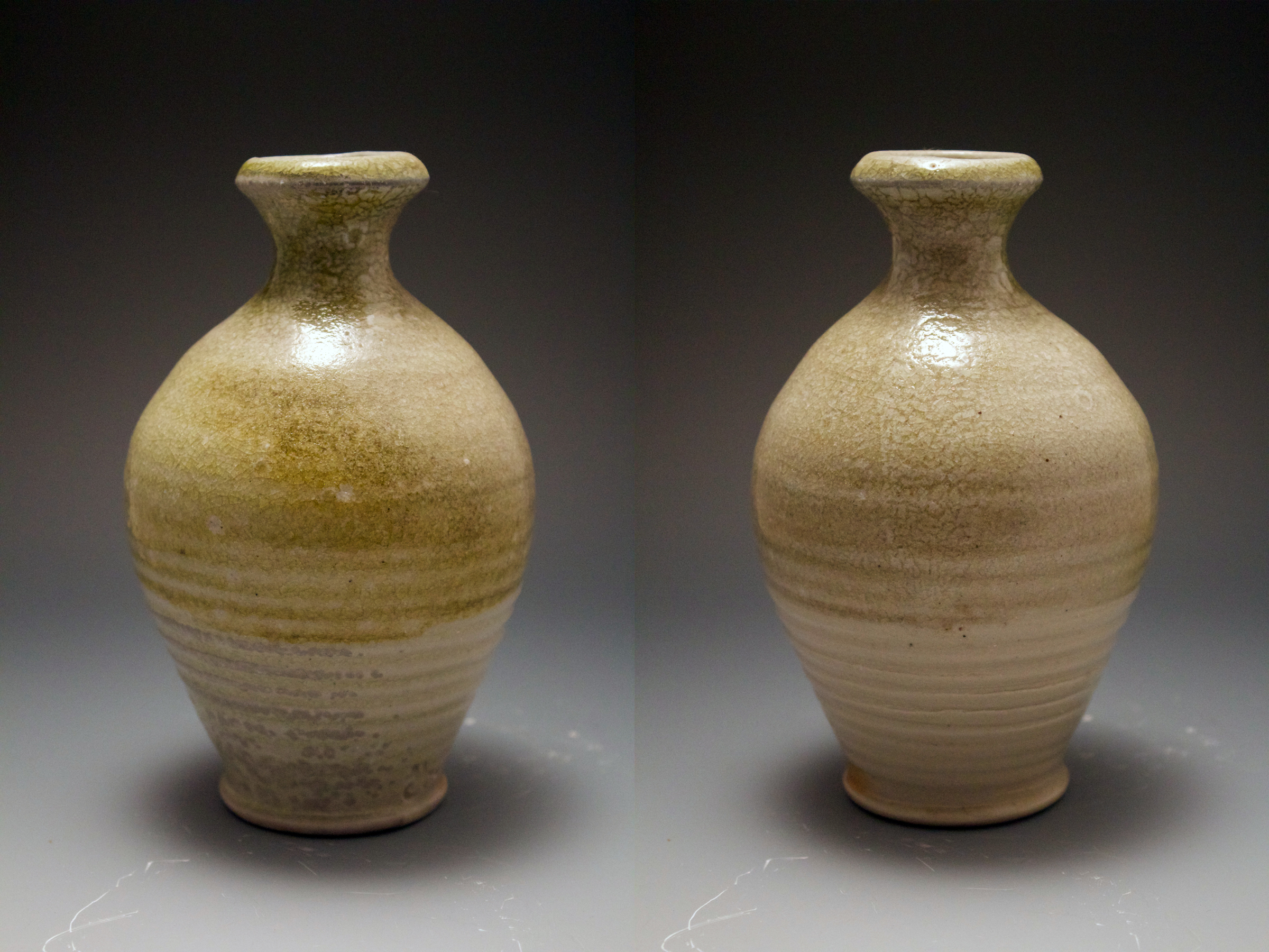 07 small bottle Published August 11, 2020 at 2400 × 1800 in 07 small bottle 4″w x 6.5″h This bottle is made from stoneware that is wood fired with a shino glaze. This bottle shows subtle ash deposits from the firing process. $40