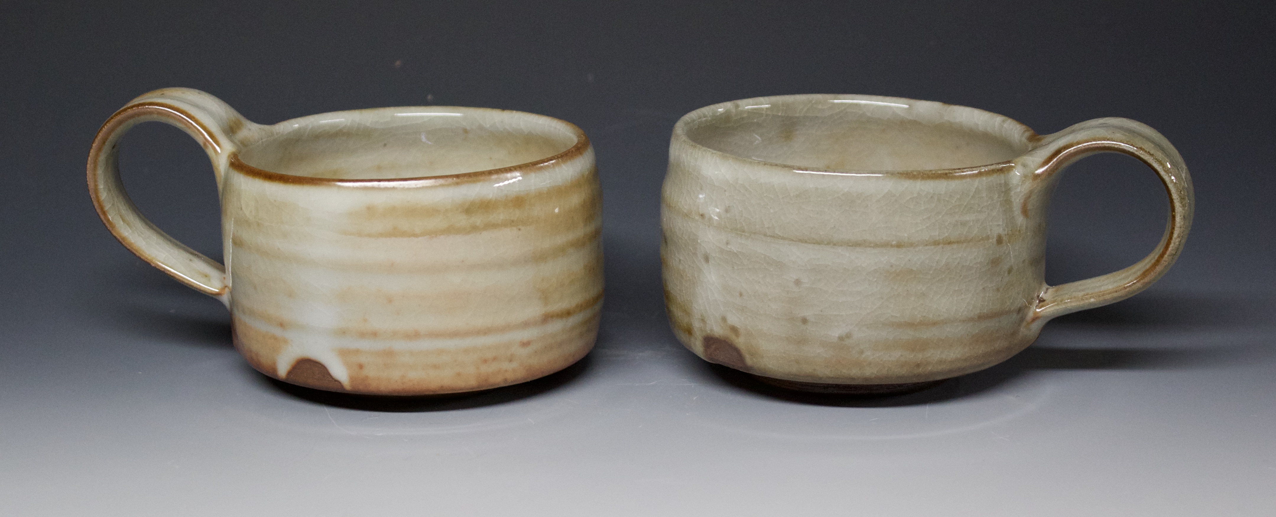 102A cups Published December 8, 2020 at 4318 × 1752 in 102A cups 4″ x 2.5″ The 2 cups have a shino glaze. each holds 8oz. $50 for the pair
