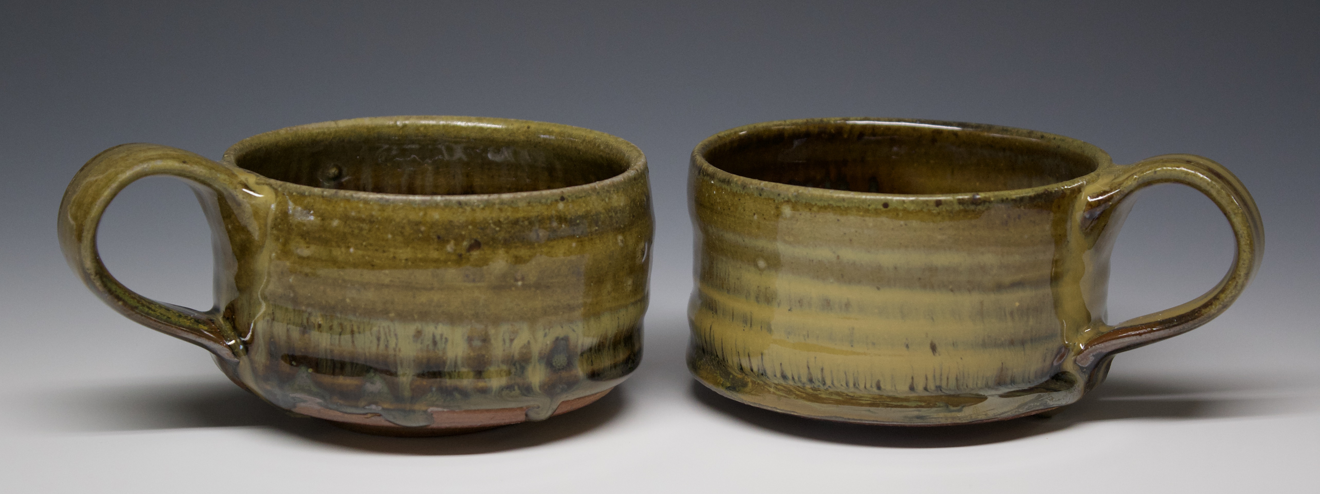 105 cups Published October 16, 2020 at 5132 × 1923 in 105 cups 4″ x 2.5″ The 2 cups have a temoku glaze with a thistle ash glaze over. each holds 8oz. $50 for the pair