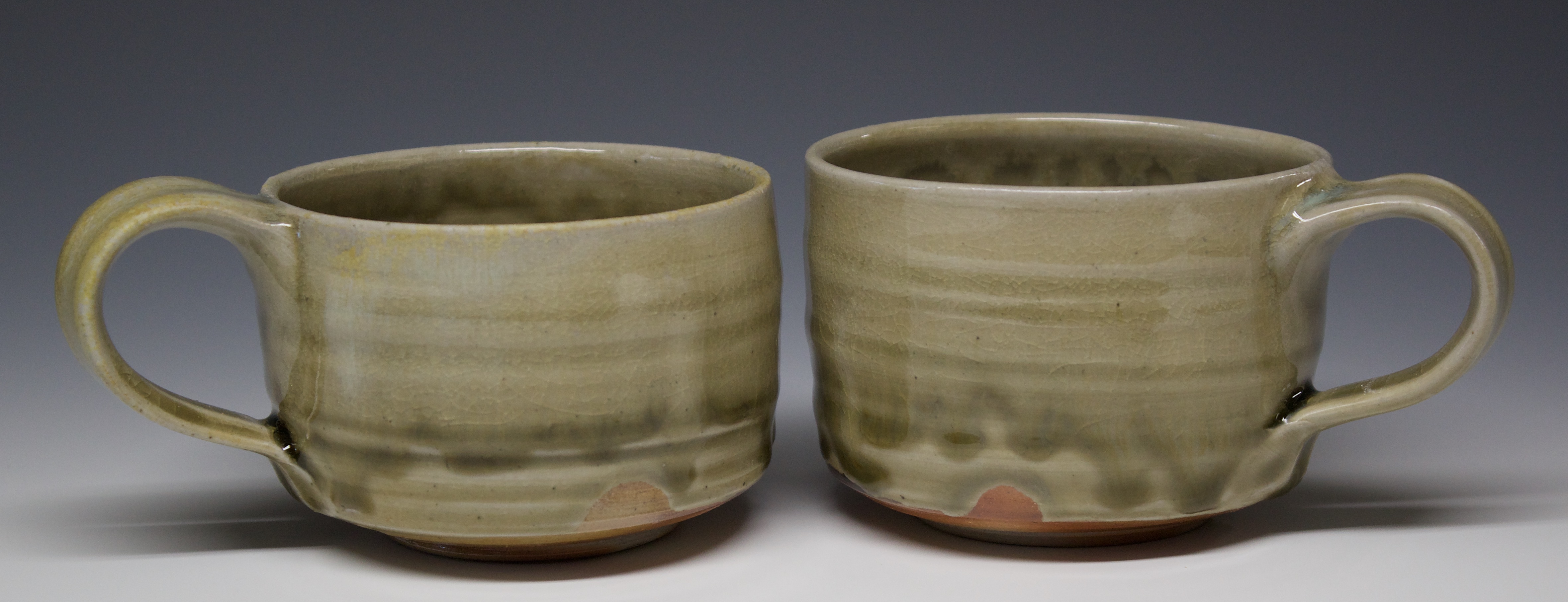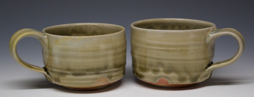 106 cups Published October 16, 2020 at 4721 × 1814 in 106 cups 4″ x 2.5″ The 2 cups have a celadon glaze with a thistle ash glaze over. each holds 8oz. $50 for the pair