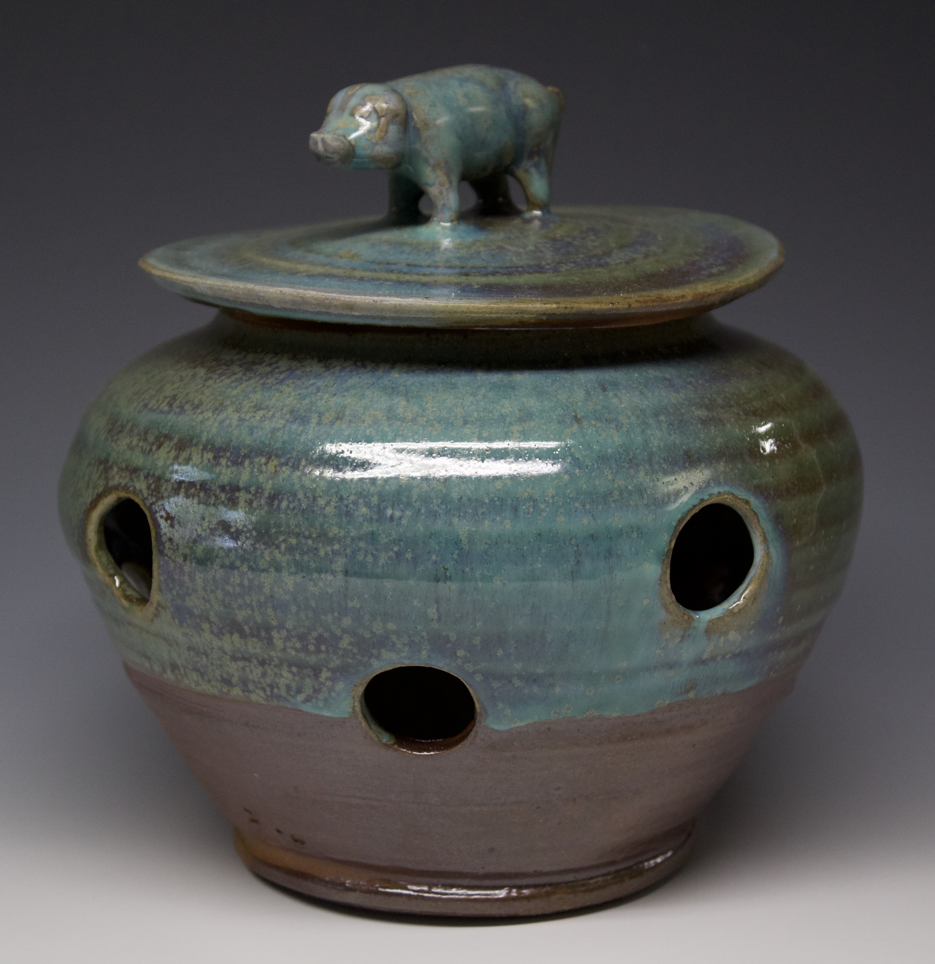 120 garlic jar with pig handle Published October 16, 2020 at 3214 × 3314 in 120 garlic jar with pig handle SOLD 6″ x 6″ Oribe glaze fits about 1 pound of garlic. $45