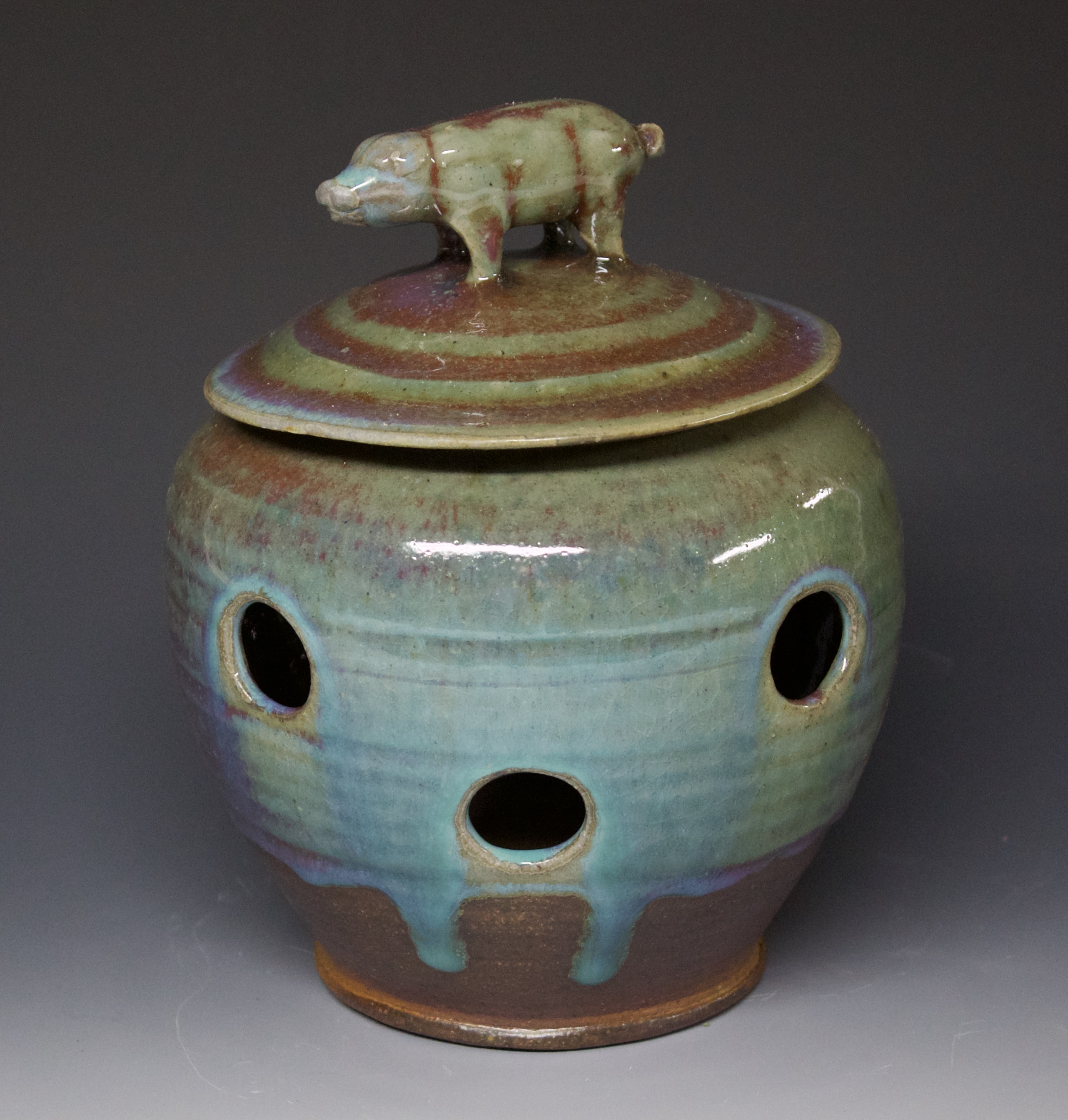 122A garlic jar Published December 10, 2020 at 2564 × 2688 in 122A garlic jar 5″ x 5.5″ Oribe glaze fits about 1 pound of garlic. $45