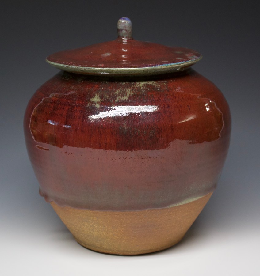 124 lidded jar Published October 16, 2020 at 3004 × 3195 in 124 lidded jar SOLD oribe with red glaze 9″ x 9″ holds 4 quarts or 2 dozen cookies $180