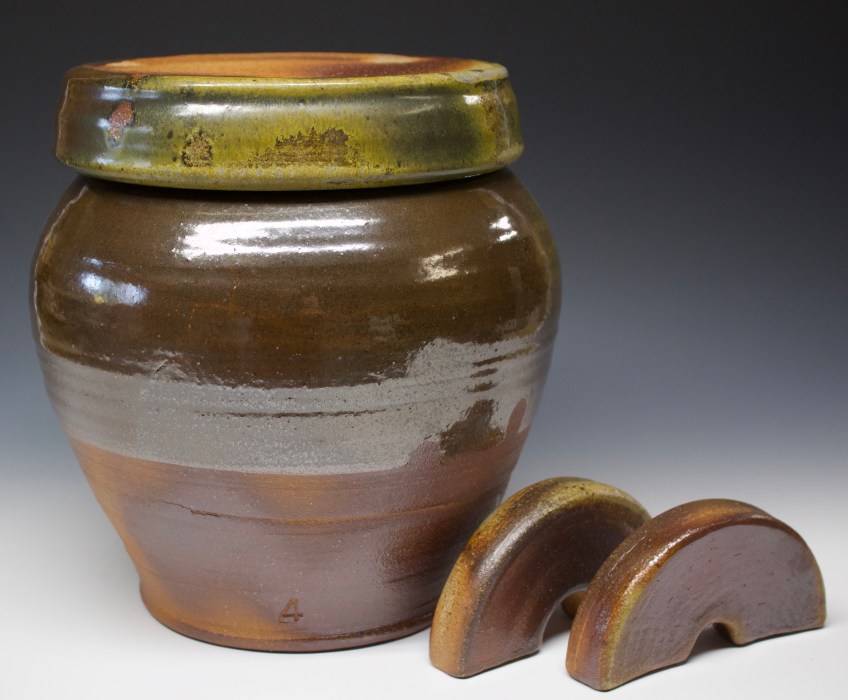 #4 is half glazed with my own glaze made from local clay and elm wood ash. The lid