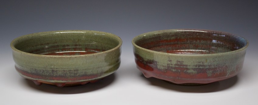 131 stew bowls Published October 16, 2020 at 4769 × 1944 in 131 stew bowls SOLD 7″ x 2″ The 2 bowls are made from durable high fire stoneware and the glaze is an oribe with a red glaze over. each holds 16oz. $60 for the two.