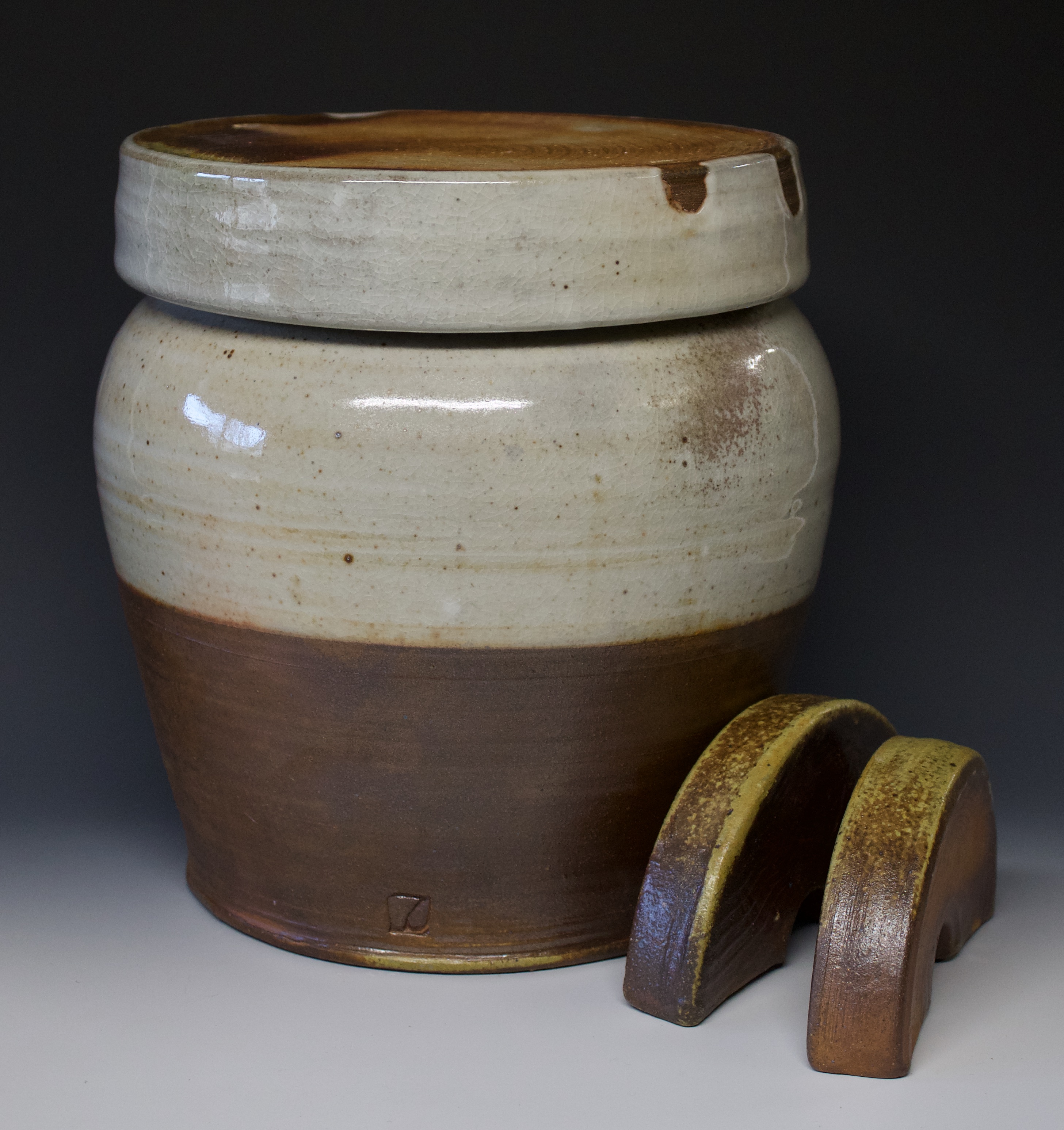 162 fermentation jar Published November 12, 2020 at 2913 × 3094 in 162 fermentation jar JUST SOLD 8″ x 9″ shino glaze holds 5 to 6 quarts $245