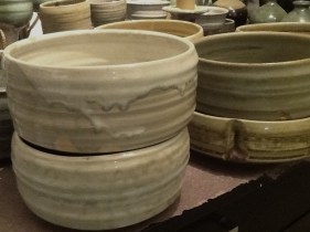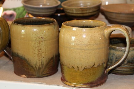 Jon has new wood fired ware and is very excited about the bowls that are coming out of the kilns this fall – definitely ready for the fall soups. He also has many of his olde world style beer mugs fired with plant ash glazes from the local area. The bowls here have a thistle ash glaze.