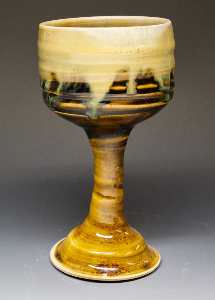 410 goblet Published October 28, 2020 at 2262 × 3162 in 410 goblet 3.5 ” x 7.5″ temoku glaze with hay ash glaze over 8 oz. $50