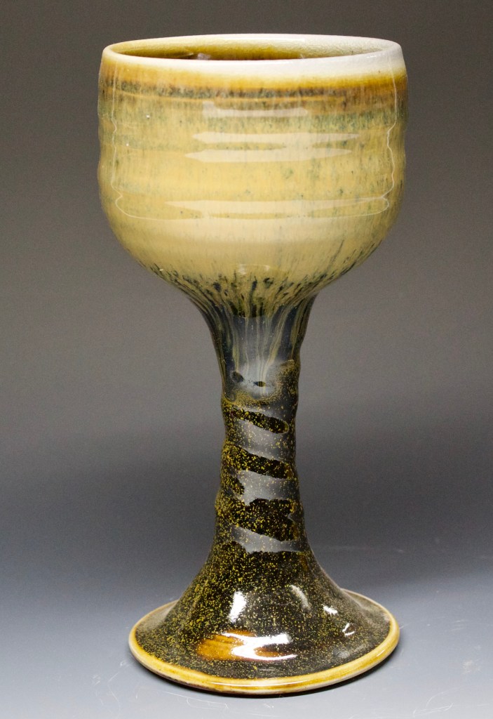 420 goblet Published October 28, 2020 at 2231 × 3251 in 420 goblet 4″ x8″ temoku glaze with a hay ash glaze over 12 oz. $50