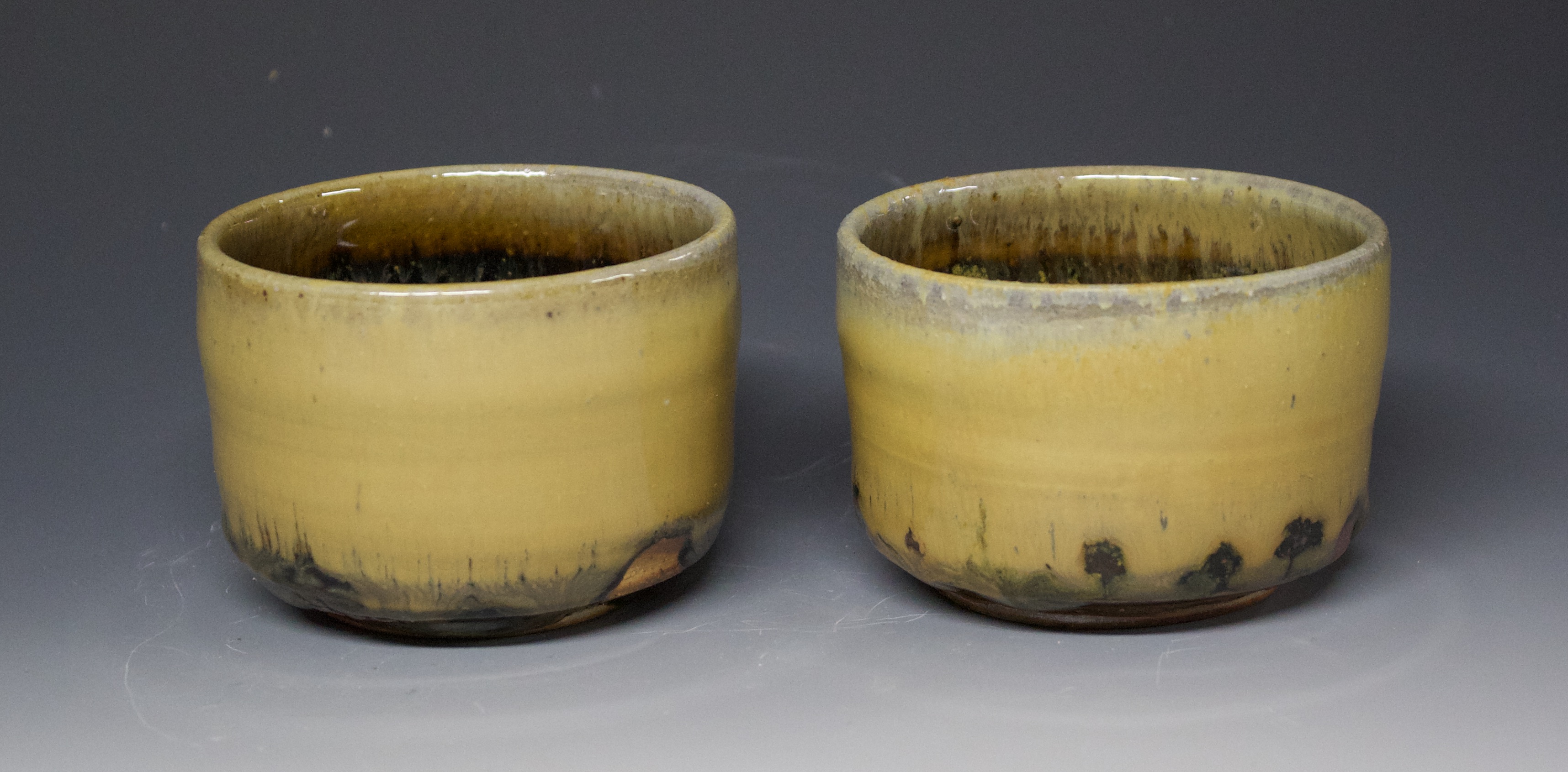 503A tea cups Published December 8, 2020 at 3432 × 1691 in 503A tea cups 3″ x 2″ each The 2 cups have a rye straw ash glaze over temoku. My studio strives to be intune with my surrounds by creating glazes from the native plants in my area. holds 4oz. each $40 sold as a set.