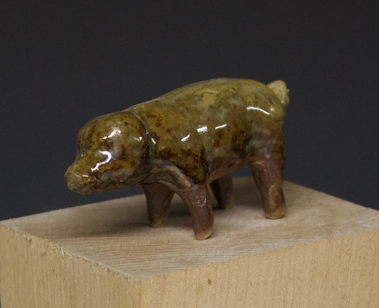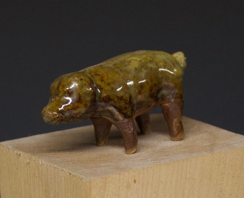 810 pig Published December 8, 2020 at 1438 × 1167 in 810 pig SOLD 2.5″ x 1″ temoku glaze with rye straw ash $12