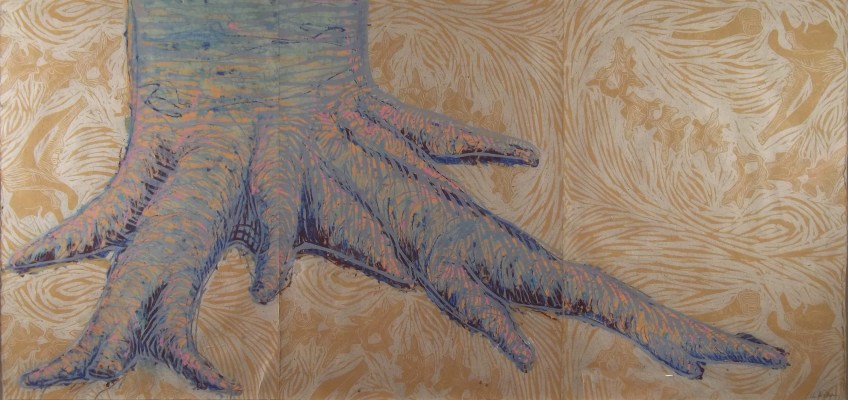 beech #1 Published January 25, 2016 at 3542 × 1671 in beech #1 40″ x 76″ handmade Kozo with cotton rag, woodcut