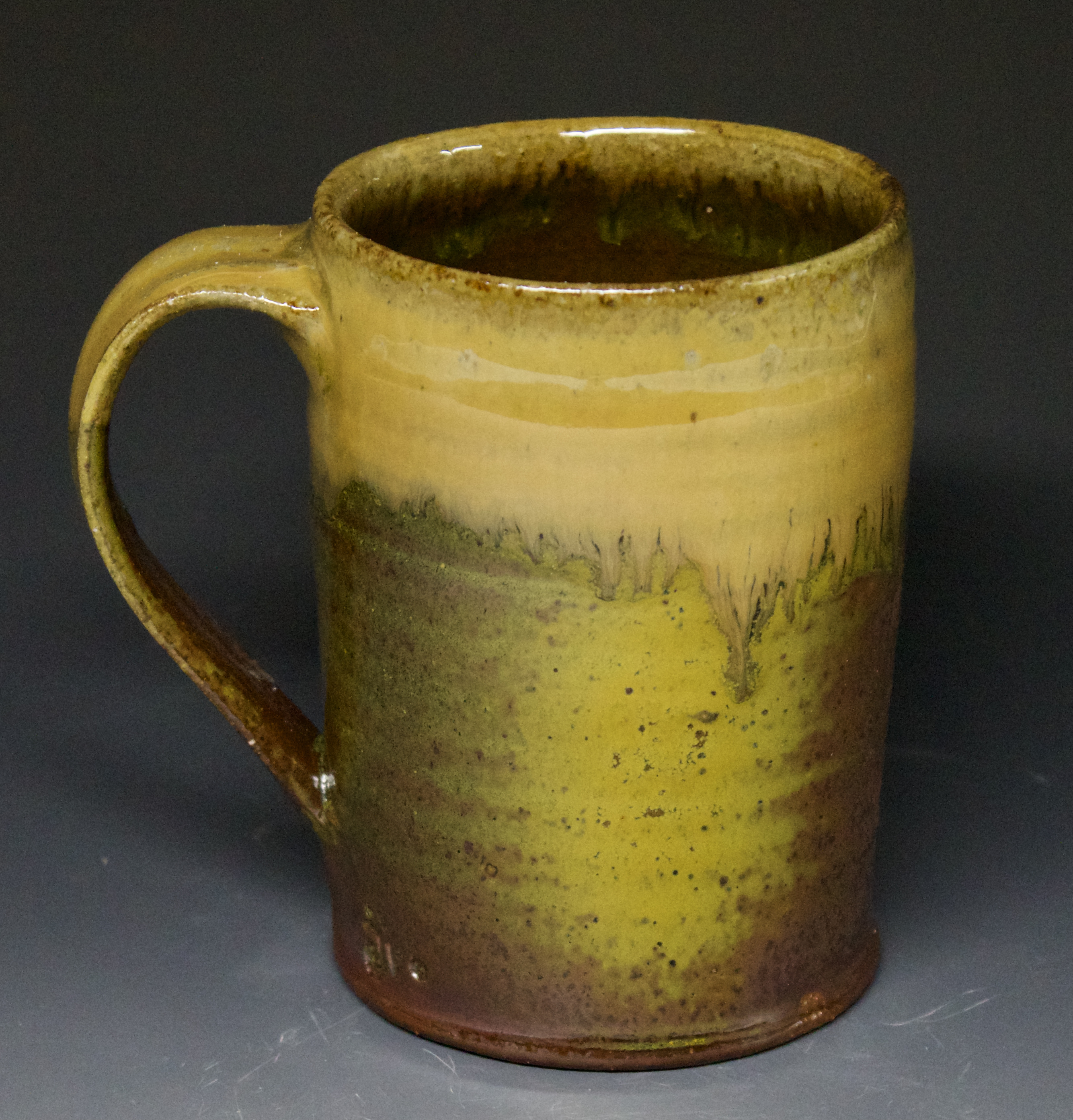 15 mug Published November 11, 2021 at 2669 × 2787 in 15 mug $40 This mug on the outside and inside has a layer of Temoku, a rich brown with the rim coated with a hay ash glaze from our farm. A blast of natural ash deposit creating the green gold mark on the side. 4″ x 3.5″