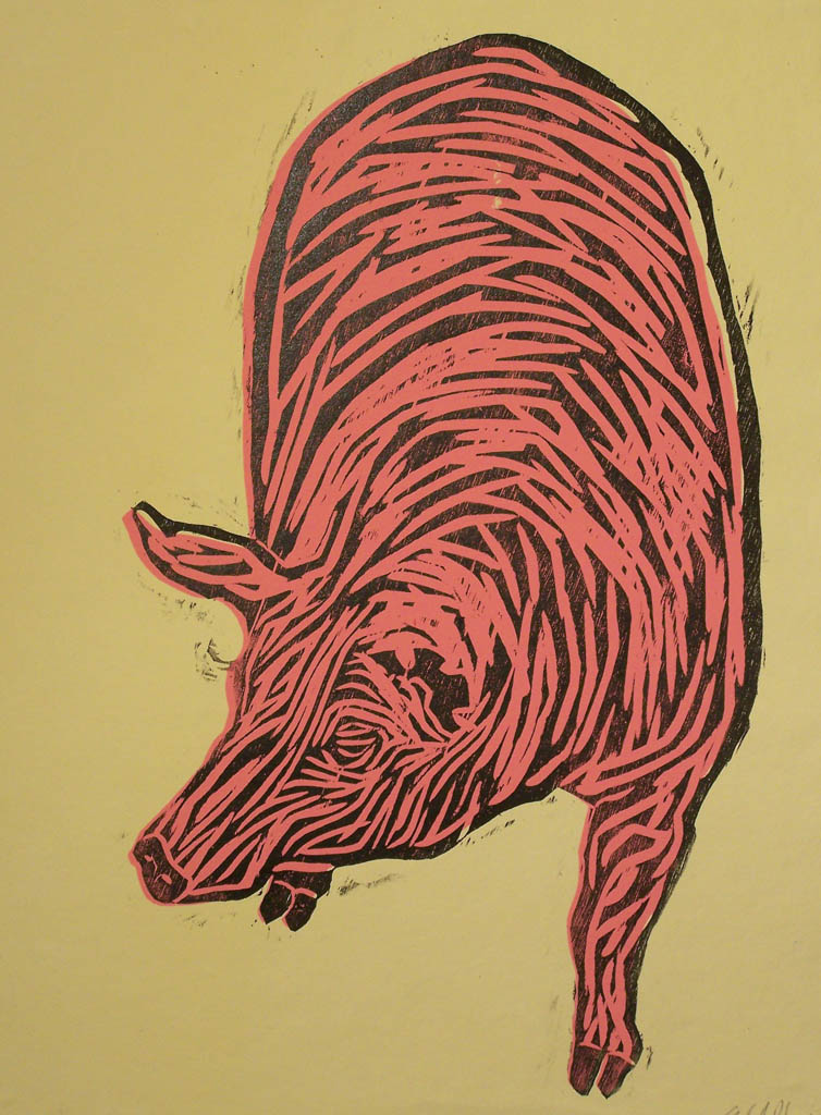 april pig Published July 23, 2016 at 754 × 1024 in april pig 18″ x 24″ ink on handmade cotton rag, woodcut