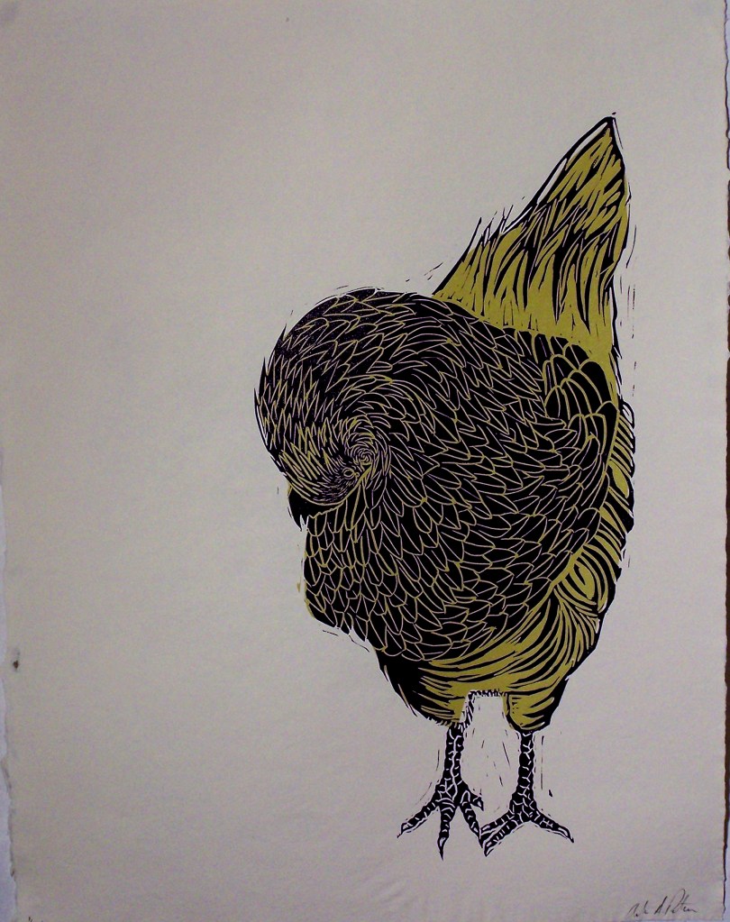 chicken #3 Published July 23, 2016 at 1890 × 2386 in chicken #3 18″ x 24″ ink on handmade cotton rag, linocut