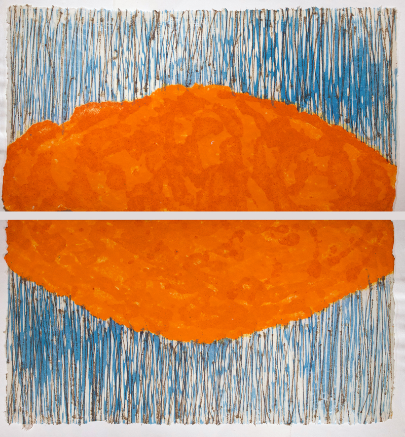 union Published March 27, 2022 at 799 × 864 in union SOLD- 48″ x 60″ pigmented cotton rag on abaca with woodblock print – dyptych